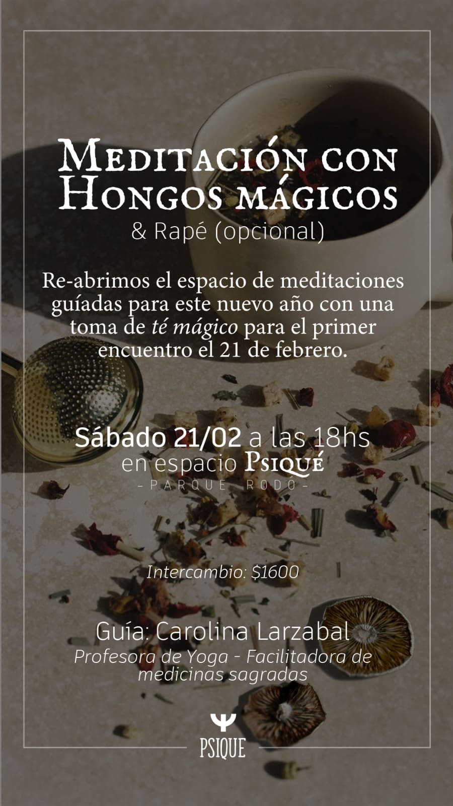 Hoy comparte clases y acompaña procesos terapéuticos con Hongos Psilocibe, integrando cuerpo, mente y espíritu.